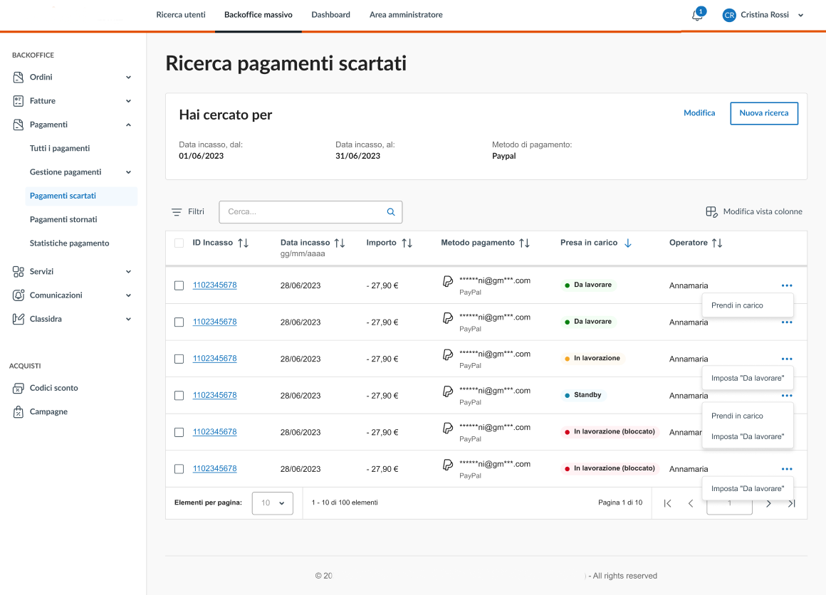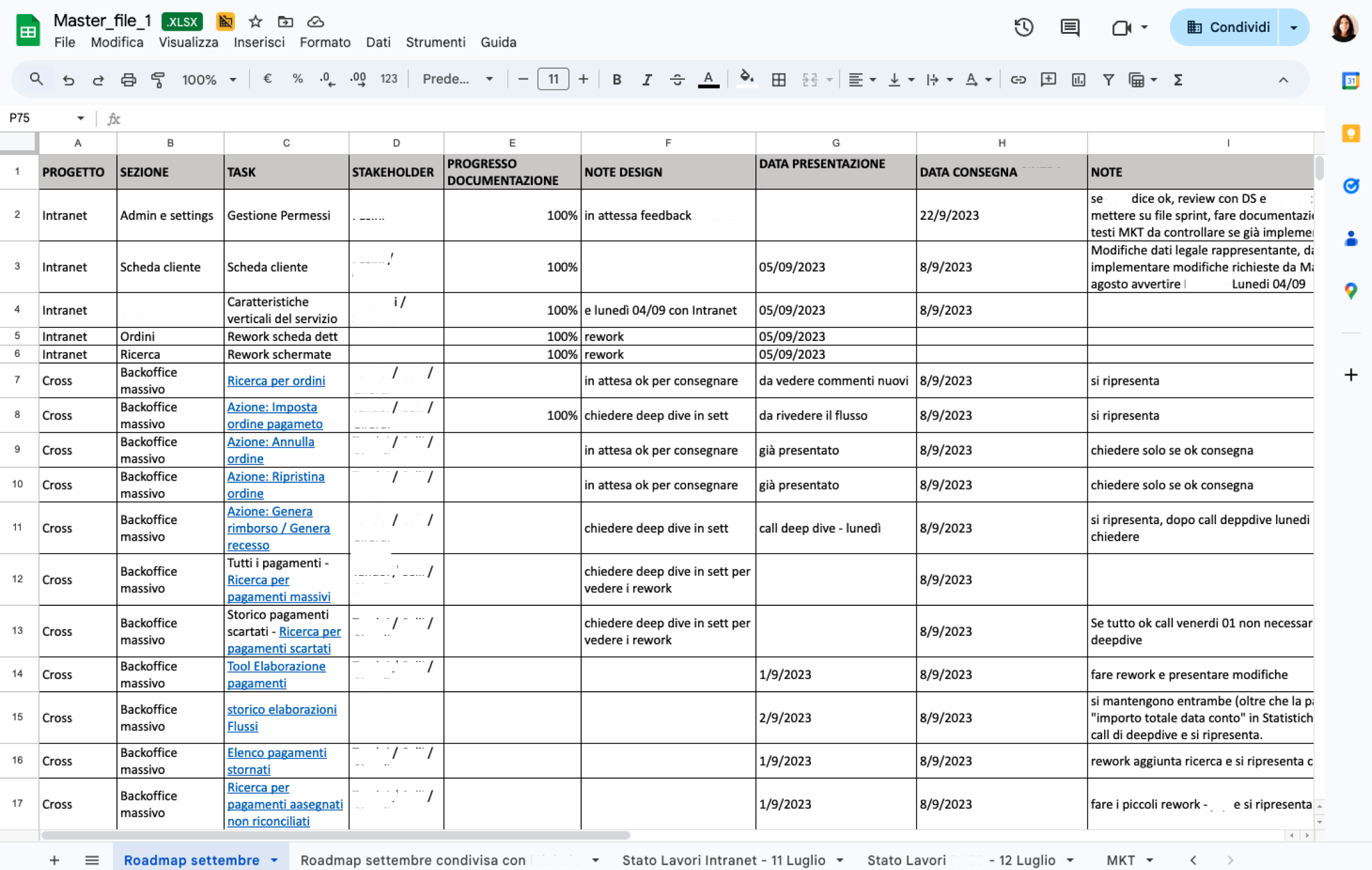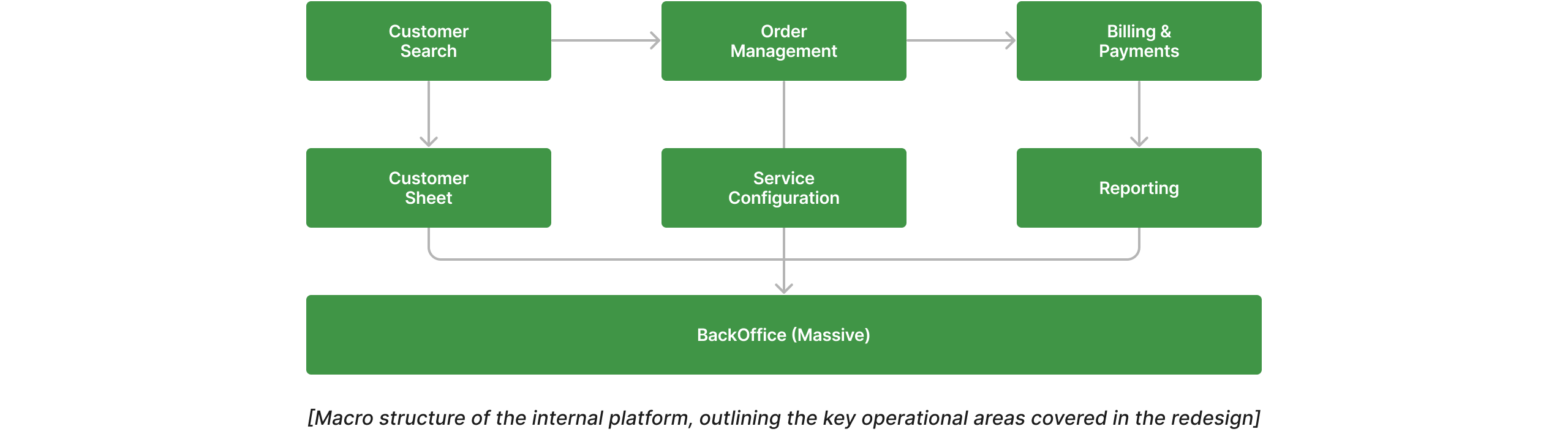 For each stream, we defined sections, sub-sections, features, and navigation models, maintaining a careful balance between a task-based structure — aligned with the operators’ daily workflows — and a more business-oriented view, tied to product lines, team responsibilities, rollout phases, and compliance needs.