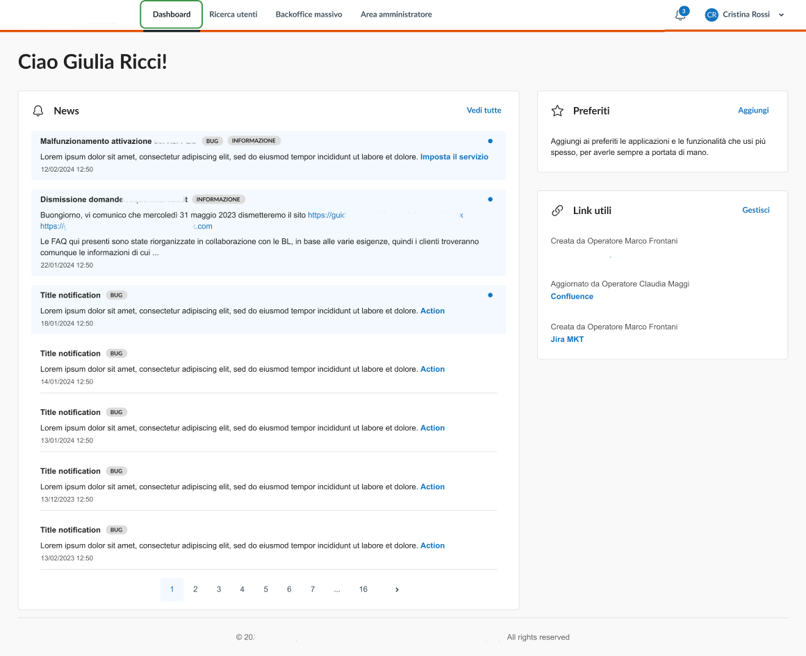 Redesign of a large-scale internal platform for a leading Italian company in the cloud and digital services sector.