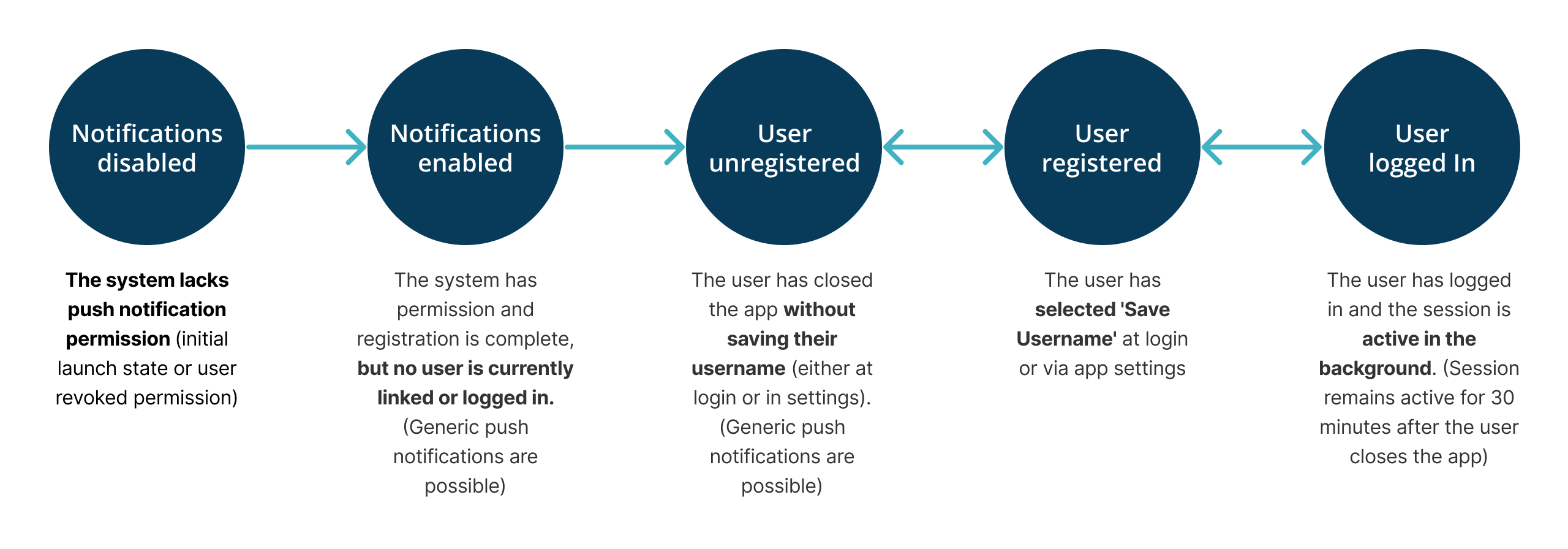 Mapping user states (notifications enabled/disabled, registered, logged in, unregistered) was critical for designing flows.