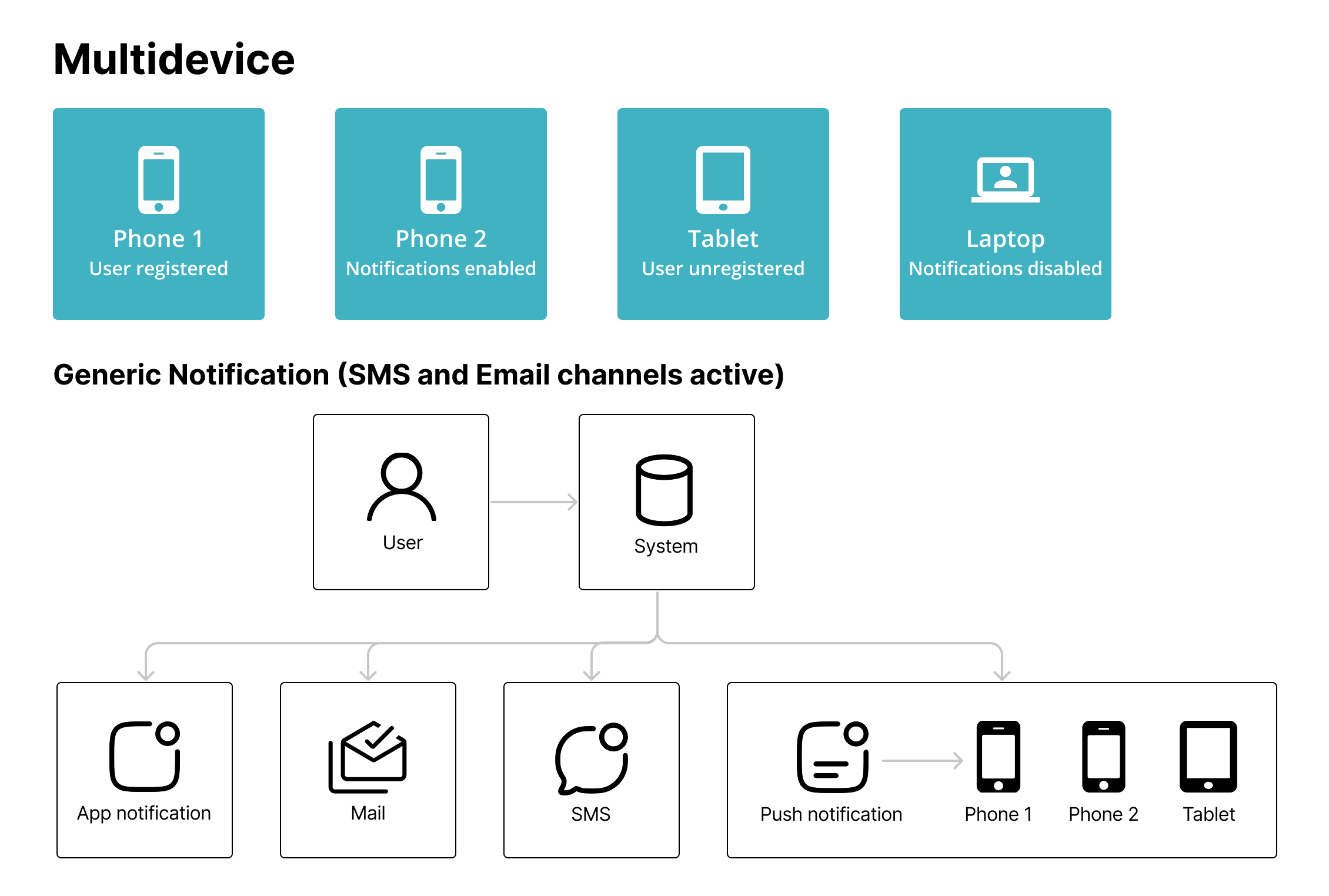 → Multi-device user: consistent notification management across smartphone, tablet, and laptop with different states